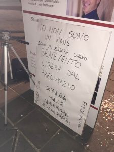 “Io non sono un virus, sono un essere umano, Benevento libera dal pregiudizio”. Sono queste le parole che un cittadino di Benevento di origini cinesi ha scritto su un cartello apparso in città.