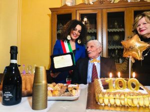 Un compleanno molto speciale e cento candeline da spegnere, la festa è tutta per Domenico Zarrella,nato a Torrioni in provincia di Avellino il 9 febbraio 1920. Una vita segnata dalla guerra, dai ricordi amari di un periodo storico difficile, ma compensato poi dall’amore della famiglia che ha creato, due figli e quattro splendidi nipoti. Oggi il signor Domenico festeggia questo compleanno speciale con le persone più care e con la simpatia che lo caratterizza da sempre. Ad omaggiare il signor Domenico anche il sindaco di Avellino Festa e quello di Torrioni, Annamaria Oliviero che gli ha consegnato una targa per suggellare questo momento unico.Martedì alle 21.00 a Speciale LabNews su Labtv ch.625 vi racconteremo la storia di Domenico e tutti i momenti di questo giorno di festa. Auguri da tutta la redazione!