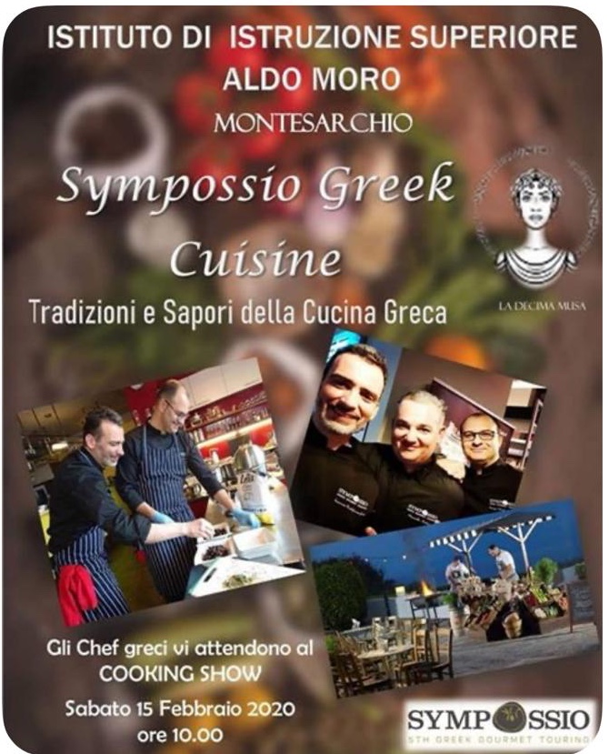 Si intitola “Simpossio Greek Cuisine” l’evento culturale legato alla cucina e alle tradizioni gastronomiche della cucina greca, andato in scena a Montesarchio, presso l’Istituto di Istruzione Superiore Aldo Moro. Un momento di interessante confronto in cucina, per gli studenti che si sono potuti misurare con grandi Chef provenienti dalla Grecia, in uno show cooking che ha prodotto gustose prelibatezze della cucina ellenica.Non solo uno scambio di ricette, ma una grande lezione sulle tradizioni alimentari di una terra millanaria,ricca di storia e cultura,anche da assaggiare.