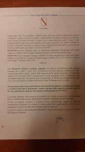Questo è quanto emerge dall’ordinanza della Regione Campania a firma del governatore Vincenzo De Luca.