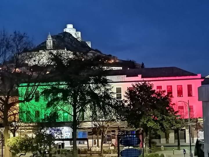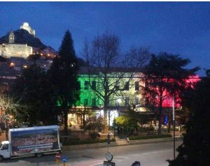 L’edificio delle scuole elementari illuminato con il tricolore. Così Montesarchio dichiara la propria vicinanza a tutto il popolo italiano in questa fase di estrema difficoltà, e ai suoi cittadini.