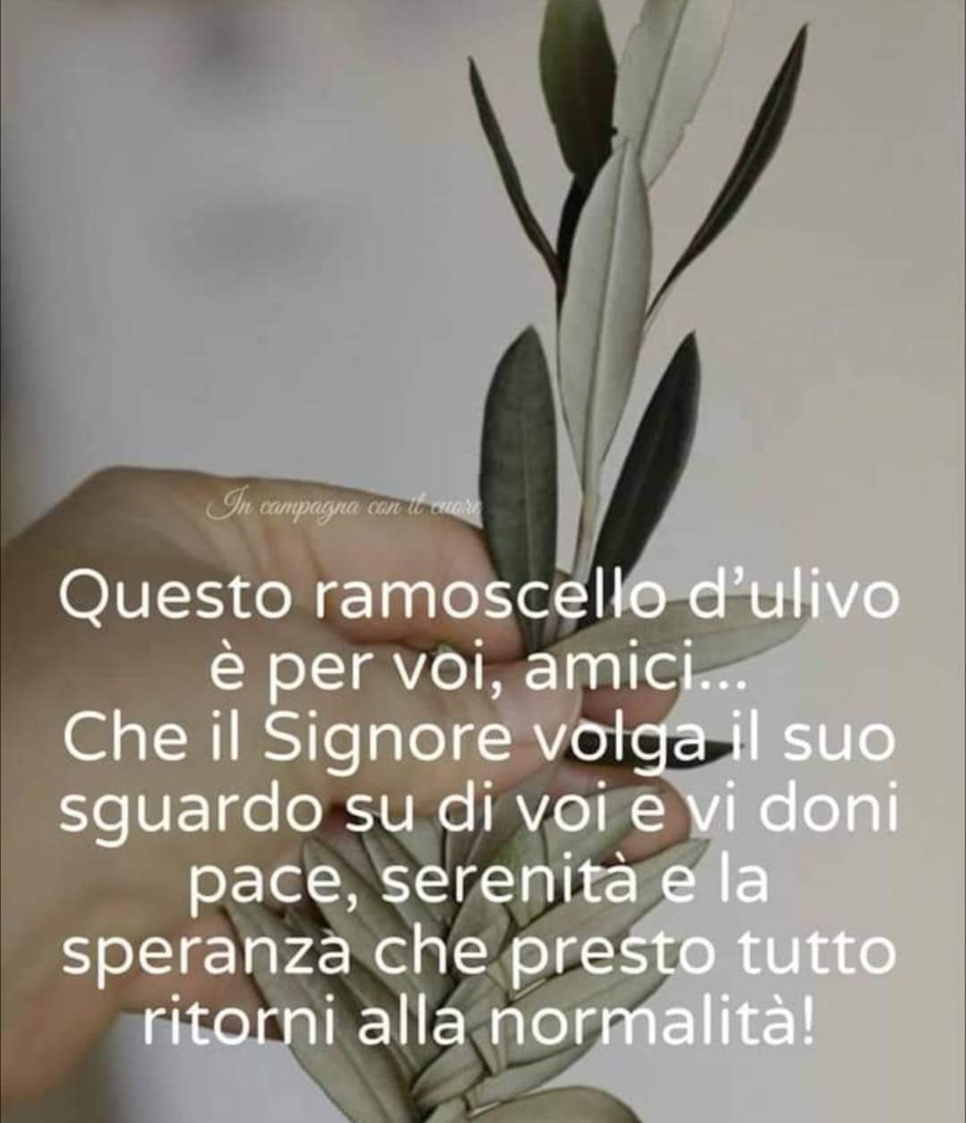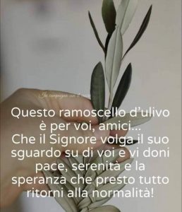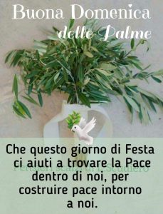 “La colomba , simbolo di Pasqua, viaggia nei cellulari, da casa a casa, da computer a computer, percorre tutto il mondo, portano con se le nostre preoccupazioni”, si legge in un video inoltrato sulle piattaforme social”,oppure “questo ramoscello d’ullivo è per voi..che il Signore volga il suo sguardo su di voi e vi doni pace serenità e la speranza che tutto possa tornare alla normalità”..”che questo giorno di festa ci aiuti a trovare la Pace dentro di noi per costruire pace intorno a noi”..Ma ora non pensiamoci..le campane sono in festa e ci aspetta il pranzo domenicale,il profumo del ragu’ che “sconfigge” le nostre paure e ang0sce di questo periodo…sperando che tutto questo sia solo un brutto ricordo. Auguri a tutti i nostri lettori. Buona domenica delle Palme.