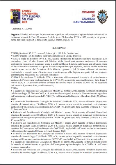 Ecco l’ordinanza del comune di Guardia Sanframondi: