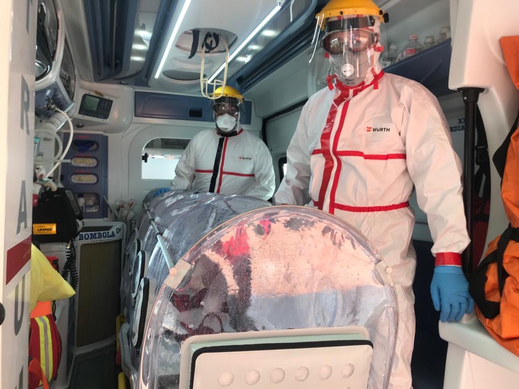 Al fine di elevare ancora di più gli standard di sicurezza, la barella ad alto biocontenimento è stata allocata su una ambulanza dedicata esclusivamente al trasporto pazienti COVID-19 e non utilizzata per il trasporto degli altri pazienti.