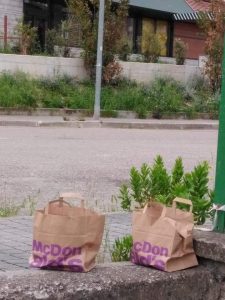 Con la fase 2 e la riapertura di diverse attività produttive sono ritornati i rifiuti in strada. E’ il caso del colosso mondiale Mc Donald’s che ha aperto i suoi “cancelli” attraverso il Mc Drive o meglio il servizio di asporto. Una volta raggiunta la struttura, l’auto attende qualche secondo per l’ordine del menu’, qualche minuto ed ecco tra le mani il cibo ordinato. Per tanti cittadini che consumano pero’ per strada l’obbligo poi è quello di “gettare” il lor rifiuto sui marciapiedi o nell’erba e mai nell’apposito cestino. Bottiglie di vetro, bicchieri di plastica, buste di carta con all’interno formiche, il tutto nei pressi del colosso..sotto le panchine, sui marciapiedi, nell’erba alta o per strada..tutto fa brodo per il beneventano. In tempi di Covid l’obbligo non è solo mascherine guanti e distanziamento sociale.. è anche di tenere la citta’ pulita. L’uomo e i danni che produce quando si muove..Eppure sull’ordinanza del cibo di asporto esiste il divieto di consumare i prodotti all’interno dei locali e nelle immediate vicinanze…ma a Benevento c’e sempre qualche furbetto..