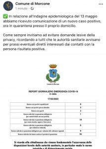 A Morcone nuovo caso positivo di Coronavirus. La comunicazione sul profilo Facebook dell’ente. Così come si legge la persona si trova in assistenza domiciliare. Probabile che il caso è uno dei due riscontarti al San Pio nella giornata di oggi (leggi qui )