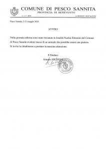 Nuovo appello del sindaco di Pesco Sannita, Antonio Michele in merito alla presenza nel Sannio della pantera. Tracce del felino sembrerebbero essere state individuate in località “nucleo Simonini” del comune di Pesco Sannita. Il sindaco invita la cittadinanza a prestare la massima attenzione