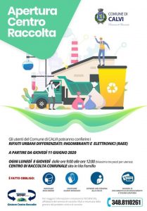 L’Amministrazione Comunale di Calvi, guidata dall’Avv. Armando Rocco, ottiene un altro importante risultato, realizzando e mettendo in funzione uno strumento che darà la svolta sia in termini ambientali e sanitari che in termini economici per tutti i propri cittadini. Infatti, a partire da ‪giovedì prossimo, ‪11 giugno 2020, sarà definitivamente aperto il Centro Comunale di raccolta rifiuti sito in Calvi alla Via Fornillo. In tale Centro gli utenti del Comune di Calvi potranno conferire i rifiuti urbani differenziati: ingombranti e elettronici (RAEE). Sarà possibile conferire presso il Centro di raccolta, con la modalità di massimo tre pezzi per utenza, nei giorni di lunedì e giovedì, dalle ore ‪9:00 ‪alle 12:00. È fatto obbligo per ciascun utente che si presenterà presso il predetto Centro nei giorni e negli orari indicati di indossare mascherine di protezione individuali e guanti monouso; entrare una persona alla volta; munirsi di documento di riconoscimento e tessera sanitaria. La gestione del Centro Comunale di Raccolta Rifiuti è affidata alla Tecnew SRL, affidataria del servizio raccolta rifiuti solidi urbani. Tale società, al fine di rendere ulteriori chiarimenti a tutti gli utenti, ha attivato un servizio informativo telefonico. “Con l’attivazione del Centro di Raccolta – ha dichiarato il Sindaco Rocco – è stato realizzato un ulteriore obiettivo, importante sia dal punto di vista sanitario che ambientale. È uno strumento che cambierà il volto della raccolta e toglierà anche l’annoso problema dell’abbandono dei rifiuti su suolo pubblico. Calvi si prende cura dei propri cittadini a cui chiede collaborazione per la pulizia e il decoro”.