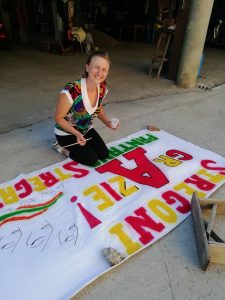 Anche contrada Pantano si tinge di giallorosso. All’ingresso della contrada lo striscione “Resta a casa”, affisso dall’associazione “La voce delle donne” nel periodo del lockdown, è stato messo da parte per lasciare il posto ad un omaggio ed un ringraziamento alla squadra della nostra città. Le parole della presidente dell’associazione “La voce delle donne” Rita Velardi: ” Qualcuno può pensare che essendo la nostra un’associazione composta da solo donne non si possa prestare attenzione a sport e passioni che molti pensano siano perlopiù di interesse maschile. Ma non è così perché quando si parla di Benevento Calcio non c’è distinzione né di età, né di sesso. L’evento della promozione della nostra squadra è qualcosa di eccezionale, non si può restare indifferenti ed è per questo motivo che abbiamo voluto omaggiare e ringraziare tutta la squadra giallorossa. Una gioia immensa che ha cancellato quanto c’è stato di negativo nei mesi scorsi a causa del covid 19. La contrada di Pantano, tramite l’associazione “La voce delle donne” e grazie all’impegno di una nostra iscritta Iwona Halas che simpaticamente definiamo “la nostra artista”, vuole esprimere i suoi complimenti e ringraziamenti al Presidente, mister, dirigenti e tutti i giocatori che sono stati formidabili. Durante tutto il campionato ci hanno fatto vivere forti emozioni. Il nostro augurio è che la serie A sia una dimora fissa. Ad majora”