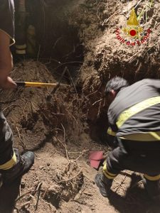 I caschi rossi, grazie all’utilizzo di una telecamera di profondità hanno individuato il povero animale, che dopo 10 ore di intenso lavoro, con scavi a mano ed impiego di cuscini vetter di sollevamento per la rimozione di grossi massi , è stato raggiunto e liberato dagli ostacoli che lo avevano bloccato e, consegnato al legittimo proprietario.