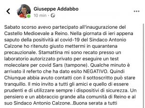 Sono risultati negativi i tamponi effettuati ai sindaci di San Marco dei Cavoti, Roberto Cocca, e Molinara, Giuseppe Addabbo che hanno partecipato all’evento di sabato pomeriggio tenutosi a Reino. A darne notizia gli stessi primi cittadini sanniti