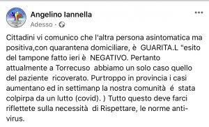 Oltre le tre guarigioni riportate dal bollettino odierno dell’Asl (leggi qui), nel Sannio da segnalare anche la guarigione di una persona di Torrecuso in isolamento domiciliare. A comunicarlo il sindaco Angelino Iannella. Nel comune sannita resta una sola persona positiva