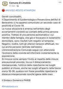 Secondo caso Covid a Limatola. L’annuncio poco fa fa da parte del sindaco Parisi sulla pagina Facebook. Si tratta di un contatto diretto del primo caso, registrato due giorni fa. Negativi invece i tamponi dei familiari di questo secondo caso, così come quelli effettuati sugli altri cittadini rientrati dall’estero o da fuori regione