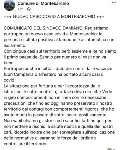 Numeri in continuo aggiornamento quelli relativi ai casi di coronavirus nel Sannio. Pochi minuti fa attraverso il profilo facebook, il comune di Montesarchio ha annunciato la presenza di un quinto positivo. Ieri la notizia di due positivi rientrati da una vacanza in Puglia, oggi un altro caso che fa di Montesarchio, insieme a Reino il comune con il maggior numero di positivi nel Sannio.