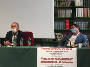 Presso la Sala Letture del Dipartimento Demm, in Piazza Arechi II,si è tenuto l’incontro sul tema “Taglio dei parlamentari – Referendum del 20 e 21 settembre”. L’iniziativa è stata proposta e organizzata dall’Associazione culturale Impegno Civico con il patrocinio del Dipartimento di Diritto, Economia, Management e Metodi quantitativi (Demm) dell’ateneo sannita. Sul tema si sono confrontati il prof. Carlo Fusaro, schierato per il SI, e il prof. Marco Plutino, sostenitore del NO, coordinati dall’onorevole Giovanni Zarro. L’incontro è stato introdotto dal’intervento del direttore del DEMM Massimo Squillante.