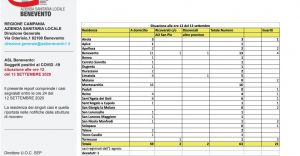 Continua a crescere il numero dei positivi nel Sannio. Nella giornata di ieri se ne contano ben otto: due a Benevento, due a Sant’Agata de’ Goti, uno a Bonea, uno a Durazzano, uno a Torrecuso e un altro a Tocco Caudino. Due le persone guarite: Moiano (ora ritornata Covid free) e una delle cinque persone di Reino. Alla luce di questi dati gli attuali positivi nel Sannio aumentano di sei unità rispetto a ieri passando da 57 a 63. La gran parte si trova in isolamento domiciliare. Buone notizie da Montesarchio dove non si sono registrati nuovi casi. Il totale dei casi nel Sannio da inizio agosto è pari ad 85 (63 attuali positivi, 21 guariti e una persona deceduta)