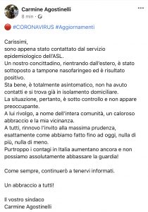 Sale il numero dei contagi nel Sannio. Un cittadino di San Bartolomeo in Galdo è risultato positivo al Covid-19. Si tratta di una persona rientrata dall’estero. A comunicarlo il primo cittadino Carmine Agostinelli