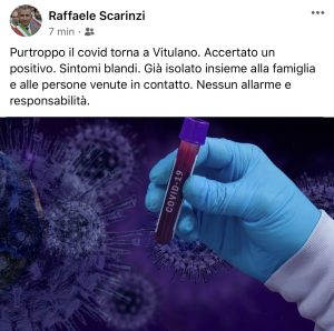 “Putroppo il covid torna a Vitulano”. Cosi il sindaco Raffaele Scarinzi annuncia la presenza di un caso covid nel comune sannita. La persona è in isolamento domiciliare. E’ il primo caso da inizio agosto.