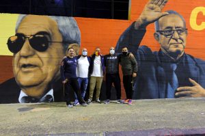 Il Benevento scorre nelle vene e..nei pennelli degli artisti beneventani. Ebbene si Benevento da oggi ha altri due murales al Rione Liberta’. Un gruppo di tifosi giallorossi residenti nella zona di via Duca D’Aosta hanno realizzato il sogno di omaggiare il Benevento Calcio per i risultati raggiunti, ripercorrendo quelli che sono stati i successi e i protagonisti della recente cavalcata dello Stregone, dalla Lega Pro alla serie A. L’intervento artistico in via Duca D’Aosta è stato realizzato nell’arco di due settimane dai due artisti sanniti Domenico Tirino e Katia Ceccarelli, in arte NAF-MK , già noti alla città di Benevento per la realizzazione dell’omaggio al mai dimenticato Capitano Carmelo Imbriani. La coppia di artisti stavolta si è messa all’opera sul muro perimetrale del campo sportivo CONI in via Duca D’Aosta, coperto opportunamente con teli oscuranti per tenere il murales lontano da sguardi indiscreti e tributare al meglio la società del Benevento Calcio con una vera e propria sorpresa. I personaggi raffigurati hanno fatto la storia del Benevento calcio nell’era dei fratelli Ciro e Oreste Vigorito, protagonisti indiscussi che hanno portato la società giallorossa nell’élite del calcio italiano. Gaetano Auteri, che ha dato voce al sogno sannita, artefice del salto di categoria, dalla Lega Pro alla serie B per la prima volta nella storia. Marco Baroni , che inaspettatamente ha portato il Benevento in serie A dopo solo un anno di cadetteria. Filippo Inzaghi, protagonista del campionato da record dello Stregone che ha stravinto l’ultimo campionato di serie B, tecnico che ambisce a rimanere nella massima serie e che rappresenta il futuro di questa società.