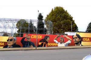 Il Benevento scorre nelle vene e..nei pennelli degli artisti beneventani. Ebbene si Benevento da oggi ha altri due murales al Rione Liberta’. Un gruppo di tifosi giallorossi residenti nella zona di via Duca D’Aosta hanno realizzato il sogno di omaggiare il Benevento Calcio per i risultati raggiunti, ripercorrendo quelli che sono stati i successi e i protagonisti della recente cavalcata dello Stregone, dalla Lega Pro alla serie A. L’intervento artistico in via Duca D’Aosta è stato realizzato nell’arco di due settimane dai due artisti sanniti Domenico Tirino e Katia Ceccarelli, in arte NAF-MK , già noti alla città di Benevento per la realizzazione dell’omaggio al mai dimenticato Capitano Carmelo Imbriani. La coppia di artisti stavolta si è messa all’opera sul muro perimetrale del campo sportivo CONI in via Duca D’Aosta, coperto opportunamente con teli oscuranti per tenere il murales lontano da sguardi indiscreti e tributare al meglio la società del Benevento Calcio con una vera e propria sorpresa. I personaggi raffigurati hanno fatto la storia del Benevento calcio nell’era dei fratelli Ciro e Oreste Vigorito, protagonisti indiscussi che hanno portato la società giallorossa nell’élite del calcio italiano. Gaetano Auteri, che ha dato voce al sogno sannita, artefice del salto di categoria, dalla Lega Pro alla serie B per la prima volta nella storia. Marco Baroni , che inaspettatamente ha portato il Benevento in serie A dopo solo un anno di cadetteria. Filippo Inzaghi, protagonista del campionato da record dello Stregone che ha stravinto l’ultimo campionato di serie B, tecnico che ambisce a rimanere nella massima serie e che rappresenta il futuro di questa società.
