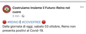 Sono guarite tutte le persone positive al Coronavirus a Reino, nel Sannio. Nel comune dell’Alto Tammaro destò molta preoccupazione la positività del sindaco Antonio Calzone che, un paio di giorni prima della notizia, partecipò ad un evento con altri primi cittadini ed esponenti politici locali. La manifestazione, va sottolineato si svolse all’aperto e nel rispetto delle norme anti-Covid. Ad ogni modo L’amministrazione comunale e l’Azienda sanitaria locale optarono per uno screening di massa sulla popolazione reinese e sulle persone che avevano preso parte alla manifestazione. Le uniche positività ai test rapidi poi furono smentite dai tamponi che diedero tutti esito negativo.