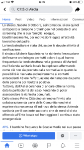 Con un nuova comunicazione, che integra quella precedente, il Comune fa sapere che “Tuttavia l’Asl cercherà di andare oltre la norma, data la particolarità del caso, tentando di poter assecondare la richiesta comunale”