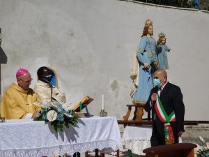 Nella Domenica 4 Ottobre giorno in cui si celebra l’ottavario della festa dei Santi e la festività della Beata Vergine Maria del Santo Rosario, alle ore 11.00 la Santa Messa Solenne di conclusione delle festività dedicate a San Cosma e Damiano e alla Madonna del Rosario è stata celebrata dall’Arcivescovo di Benevento Monsignor Felice Accrocca, concelebrata dal Parroco Don Albert, animata dalla “Schola Cantorum” di Terranova, alla presenza del Sindaco di Arpaise Vincenzo Forni Rossi insieme con l’Amministrazione Comunale, della Polizia Municipale e dell’Associazione Volontari Pubblica Assistenza di San Leucio del Sannio. Durante la celebrazione alle ore 12.00 l’Arcivescovo unitamente all’assemblea ha recitato la supplica della Madonna di Pompei e al termine prima della Benedizione e dell’affidamento ai Santi e alla Madonna, il Sindaco ha salutato l’Arcivescovo portandogli il benvenuto nella comunità a nome dell’intera amministrazione e della cittadinanza. Al termine di questi intensi giorni di festa un po insoliti quest’anno rispetto agli scorsi anni, tutti i pellegrini devoti convenuti, in modo particolare visto il duro momento che l’Italia ed il mondo sta attraversando, hanno reso le loro preghiere a Dio per l’intercessione dei Santi Medici Cosma e Damiano, loro che hanno esercitato la loro professione medica, unendo la cura dei corpi all’annuncio del Vangelo vivendo nella missione di carità, possano oggi chiedere la grazia a Dio affinchè termini questa epidemia, con l’aiuto suo costante chiedendo la salute del corpo e dello spirito. Un grande momento ricco di fede e di preghiera, dunque, quello vissuto in Terranova, dove nel corso dei secoli tanta è la venerazione per i Santi Medici Cosma e Damiano radicata saldamente nella popolazione di tutto il circondario, anche in considerazione delle numerose grazie ottenute dai devoti, testimonianza di ciò sono le centinaia di ex voto presenti nel Santuario, con la speranza che presto ritorneremo alla normalità, ritornando alle tradizioni di un tempo.