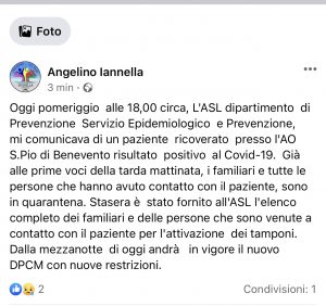 Un nuovo caso di positività al COVID nel comune di Torrecuso. La persona è ricoverata al San Pio di Benevento. A comunicarlo il sindaco Angelino Iannella attraverso un post su Facebook