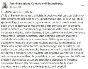 Primo caso di coronavirus a Buonalbergo. Oggi l’ufficialità dell’Asl al comune sannita che, attraverso il primo cittadino Michelantonio Panarese, ha comunicato la notizia.