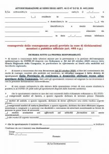 Da qui anche l’impegno della Regione Campania nella persona del neo assessore Gino Abbate e il sindaco di Benevento Mastella con un tavolo di confronte  a Palazzo Santa Lucia. Intanto è tornato in vigore l’autocertificazione in Campania: il documento autoprodotto sarà obbligatorio per gli spostamenti notturni dei cittadini. In Campania dal 23 ottobre sarà vietato anche spostarsi tra le province tranne che per i motivi indicati nell’ordinanza firmata dal governatore De Luca. Anche in quel caso bisognerà portare con sé l’autocertificazione già conosciuta dagli italiani durante il lockdown nazionale.Il cittadino dovra’ fornire non solo le proprie generalità ma anche le motivazioni per le quali si sta spostando, nonostante il divieto..