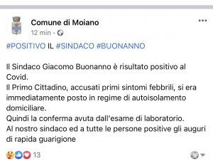 È risultato positivo al coronavirus il sindaco di Moiano Giacomo Buonanno. È quanto si apprende sul profilo Facebook dell’ente. Il primo cittadino sannita dopo i primi sintomi febbrili si era posto in autoisolamento. Dopo Antonio Calzone, sindaco di Reino, si tratta della seconda fascia tricolore sannita colpita dal virus