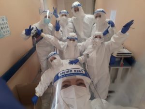 Un 84enne, il paziente ricoverato da più tempo. E’ arrivato in ospedale più di un mese fa per un controllo oncologico. Purtroppo era positivo al covid con una forma severa di polmonite; pensava di non farcela , ogni giorno ce lo ripeteva e noi a incoraggiarlo; ha imparato a sopportare il casco per lunghe ore. Ogni tanto si deprime ancora, ma appena riesce a respirare bene senza casco, brillano i suoi occhi e si riaccende la speranza : oggi la notizia che è negativo il suo tampone.