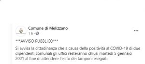L’Asl di Benevento ha comunicato i dati odierni dei contagi nel Sannio. Su 568 tamponi processati 16 i nuovi casi. Alto il numero dei guariti: dopo i 127 di ieri, oggi sono 80 le persone che hanno sconfitto il virus. Ancora assenti i dati totali: da parte dell’azienda sanitaria locale è in corso una revisione della documentazione da inizio pandemia ad oggi. Intanto a Melizzano dopo la posività di due dipendenti comunali resteranno chiusi gli uffici comunali nella giornata di domani 5 gennaio