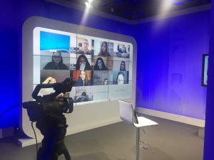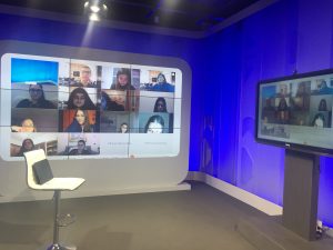 Nelle immagini un momento della lezione online del corso di giornalismo dagli studi di Labtv