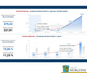 La Campania scoprirà solo domani se sarà in zona rossa, intanto però nel Sannio il Comune di Morcone ha anticipato i tempi e già oggi ha preso la sua decisione: a prescindere dalla fascia di appartenza della regione, a partire da lunedi il comune dell’alto tammaro adotterà misure da zona rossa. A stabilirlo l’amministrazione comunale dopo l’incremento dei casi covid nell’ultimo mese: in base all’ultimo aggiornamento sono 43 i positivi, ma si attende il risultato di altri test effettuati nella giornata di ieri. Attualmente si trova in quarantena oltre 100 persone. I dati riferiti all’ultima settimana, poi parlano chiaro: l’incidenza e la percentuale di nuovi positivi a Morcone sono superiori alla media media regionale. Nel caso del tasso di positività si arriva al 15%, mentre la Campania si attesta al 11,23%. I dati – sottolinea il sindaco Luigino Ciarlo in un post su facebook – sono tali da determinare la necessità di istituire misure maggiormente restrittive per evitare un ulteriore diffusione”. Preoccupano i focolai presenti sul territorio e anche la psossibile presenza di varianti virali ad alta contagiosità.