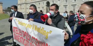 Riscende in piazza il mondo del weeding. Questa mattina a Caserta nuova manifestazione del mondo del matrimonio con un unico slogan: UNA DATA CERTA DI RIPARTENZA del settore.. Un netto calo dei matrimoni nel 2020, di circa 80% per i matrimoni religiosi (dati istat del 18 febbraio 2021). Il comparto wedding/cerimonie/event è uno dei pochi che supporta il prodotto Made in Italy e dunque il manifatturiero italiano. Aziende e fatturati sani che devono solo ripartire. Fotografi, atelier, fiorai, c’e’ tutto un mondo che gira intorno al settore e cha ‘sfama’ tante famiglie. Tutti insieme dunque per una protesta pacifica in circa 30 piazze italiane. PERCHE’ LE CROCIERE SI E I MATRIMONI NO? PERCHE’ SI STA UCCIDENDO IL COMPARTO E LA FILIERA DEL MATRIMONIO ITALIANO? PERCHE’ non stabilire IL NUMERO DEGLI INVITATI in proporzione alla capienza ed estensione delle strutture ricettive come suggerito nei nostri protocolli? Queste alcune domende degli addetti ai lavori presenti a Caserta insieme a Confesercenti e delegazioni dal Sannio e dall’Irpinia.