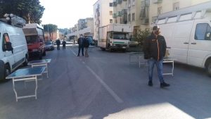 Tornano a protestare gli anbulanti ma stavolta lo fanno nel cuore della citta’ dove oggi si doveva svolgere il mercato del Rione Liberta’ in via Bonazzi e che a causa delle restrizioni della zona rossa e’ ancora tutto fermoo. ‘Banchi degli ambulanti ‘ vuoti lungo la strada cittadina e cartelloni con su scritto ‘Vogliamo lavorare’. Una protesta pacifica e simbolica che segue quella dei giorni scorsi, quando i commercianti, ristoratori, centri estetici e parrucchieri scesero in strada con i loro furgoni sfilando lungo la citta’ per il ritorno alla vita normale.