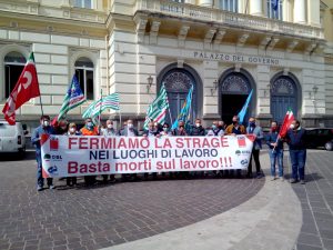 “Fermiamo la strage sui luoghi di lavoro’, il sit-in dei sindacati Cgil, Cisl e Uil