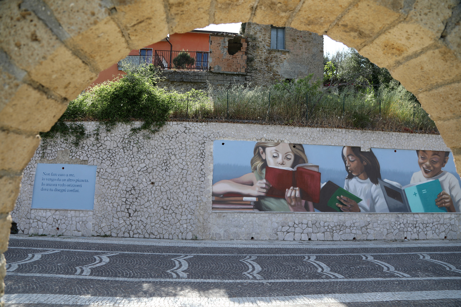 A Torrioni in provincia di Avellino, la cultura e il senso civico passano anche attraverso l’arte, quella accessibile a tutti come la StreetArt. Una parete lungo la strada che attraversa il piccolo centro irpino, diventa la base su cui è stato realizzato uno splendido murales, voluto dal Servizio SAI presente sul territorio e accolto con gioia dall’Amministrazione Comunale. Gli artisti, che hanno realizzato l’opera grazie al contributo della Cooperativa ed Ente di Formazione La Girella, sono due veri virtuosi del genere, Davide Brioschi e Teresa Sarno. I due writers, hanno dato il via con il loro murales al programma di sviluppo culturale finalizzato ad una nuova narrazione delle aree interne non più legate all’immagine di una popolazione che sta invecchiando, con poche opportunità di lavoro e una carenza di servizi, ma a nuove ed innovative energie mosse dal motore dell’amore per la cultura.Il quadro che si estende sulla grande parete dinnanzi al municipio, è un inno alla bellezza e alla cultura: tre bambini,belli e sorridenti, vengono raffiguarti con dei libri tra le mani. Le loro espressioni esprimono gioia e curiosità per la lettura, per il sapere. La loro tenerezza, i loro sguardi, sono il racconto di una speranza che attinge dalla cultura e che rende liberi. Un omaggio alla cultura dunque, che veicolata dalle pagine di un libro si fa anche maestra di vita, nel vivere quotidiano, nella costruzione di una gioventù corretta e civile.