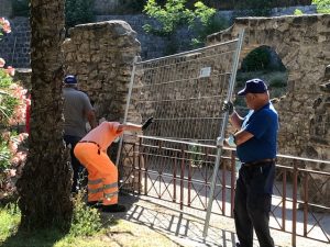 Questa mattina sono state rimossi i pannelli di recinzione collocati intorno alle vasche del Parco delle Terme Jacobelli.