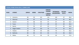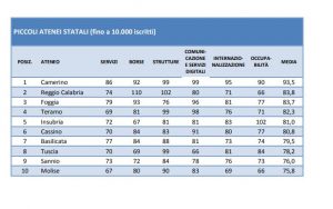 Arriva puntuale a metà luglio la classifica annuale delle Università italiane a cura del Censis, istituto di ricerca socio economico. Una graduatoria che quest’anno sorride particolarmente all‘Università degli Studi del Sannio che nella classifica dei piccoli atenei statali (fino a 10.000 iscritti) fa un balzo in avanti di quattro posizioni rispetto allo scorso anno passando dal nono al quinto posto. In vetta sempre l’Università di Camerino, ultimo anche quest’anno l’ateneo molisano.