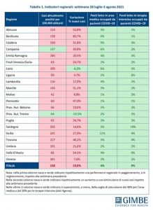 Rallenta la crescita dei nuovi casi Covid in Italia, ma aumentano i ricoveri e le terapie intensive. Sono alcuni dei dati che emergono dal monitoraggio indipendente della Fondazione GIMBE relativo alla settimana 28 luglio-3 agosto 2021.  Pur rimanendo “bassi i numeri assoluti” –  puntualizza il report –  i ricoverati in area medica sono aumentati del 36%. I nuovi casi settimanali, dichiara Nino Cartabellotta, presidente della Fondazione GIMBE, “continuano a salire, seppur a un ritmo meno sostenuto rispetto alla settimana precedente, ma rimangono indubbiamente sottostimati dall’insufficiente attività di testing e dalla mancata ripresa del tracciamento dei