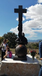 La statua in bronzo è opera dello scultore canadese Timothy Schmalz,e raffigura San Pio in ginocchio, ai piedi della Croce, con il pianeta tra le braccia.L’evento è stato accolto con tanta emozione dal sindaco di Pietrelcina Domenico Masone, dall’On.Maria Teresa Baldini,dal Presidente della “Saint Pio Foundation” Luciano Lamonarca e dai fedeli presenti alla cerimonia di inaugurazione.
