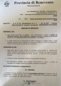 Su questa arteria, interessata da tempo, com’è noto, da imponenti lavori per molti milioni di Euro per la riqualificazione, la sistemazione e la messa in sicurezza del manto stradale, sono transitati in queste ore, anche di notte, alcuni mezzi pesanti (TIR per trasporto eccezionale), nonostante il divieto imposto da oltre un mese dalla Provincia proprio a ragione dei lavori in corso, così come comunicato tempestivamente alle Autorità e ai cittadini-utenti (anche attraverso la Stampa: vedi Comunicato Stampa n. 1678 del 29 settembre 2021) e così come segnalato “in loco”.