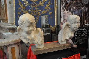 bottega campana del XVII secolo, asportati il 13 dicembre 1989 dalla Chiesa di San Sebastiano a Guardia Sanframondi. I due angeli, spiegano in Carabinieri, sono stati recentemente rimpatriati dalla Francia, dov’erano stati localizzati “nella disponibilità di un collezionista inglese che, ignaro della provenienza illecita, li aveva acquistati circa 20 anni prima da un antiquario napoletano, durante un soggiorno in Italia. In previsione di un trasferimento in Portogallo, il collezionista aveva deciso di vendere gli angeli, affidandoli a un antiquario di Avignone, ma in questo frangente sono stati individuati dai Carabinieri e bloccati con l’intervento dell’omologo corpo speciale della polizia francese. “Venuto a conoscenza dell’effettiva provenienza furtiva dei beni – affermano i Carabinieri – il collezionista ha deciso di restituire gli angeli alle autorità italiane. Così, all’esito di una trattativa stragiudiziale, condotta da militari della Sezione Antiquariato del Reparto Operativo Tpc, al comando del caporale Saverio Loiacono, e coordinata dalla Procura della Repubblica di Benevento, diretta dal Procuratore Aldo Policastro, nel luglio scorso le opere sono state rimpatriate grazie alla proficua collaborazione con l’Ambasciata di Francia a Roma. La riconsegna ufficiale è avvenuta nel corso di una solenne cerimonia presso la sede diplomatica, in presenza dell’Ambasciatore francese Christian Masset e del Generale di Brigata Roberto Riccardi, Comandante dei Carabinieri Tpc che, a sua volta, ha restituito beni culturali sottratti alla Repubblica francese e recuperati in territorio italiano. Sono state inoltre restituite due sculture in marmo bianco raffiguranti putti alati o cherubini, asportate “in epoca antecedente al 19 gennaio 1999 dalla Chiesa del Convento di San Francesco a Guardia Sanframondi, ove erano collocate ai lati del terzo altare della navata destra. Tra gli anni Ottanta e Novanta del secolo scorso, approfittando delle chiusure post terremoto, diversi luoghi di culto di Guardia Sanframondi sono state oggetto di sciacallaggio, con lo smembramento e il trafugamento di numerosi elementi marmorei brutalmente distaccati dagli altari delle chiese e immessi nel fiorente mercato clandestino dell’antiquariato”.