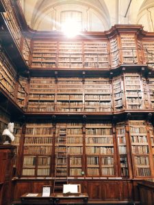 Nelle sale della preziosissima Bibliotheca Angelica di Roma, aperta ufficialmente nel 1604, che insieme all’Ambrosiana di Milano e alla Bodleian Library di Oxford, vanta d’essere la prima biblioteca, in Europa, destinata al pubblico (il suo nome omaggia il vescovo Angelo Rocca che affidò la sua raccolta libraria di edizioni pregiate ai frati del convento di Sant’Agostino nella capitale), divenuta centro internazionale di cultura e, dal 1940, sede dell’Accademia Letteraria dell’Arcadia, farà da scrigno alla mostra d’arte contemporanea Liber, a cura del critico d’arte Antonella Nigro, nella quale relatori e artisti, con perizia, cura e passione, hanno indagato, scritto e illustrato il tema del libro, della lettura e della conoscenza nelle loro molteplici e affascinanti declinazioni.
