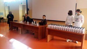 Presente alla consegna delle borracce il Rettore dell’ateneo Canfora che ha parlato di un piccolo passo verso il problema della sostenibilita’.