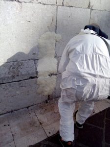 Una pasta speciale che assorbe la vernice e anche la cioccolata. Parliamo del campanile di Santa Sofia che l’azione di uno sconsiderato ha deturpato qualche settimana fa. Stamattina all’opera un tecnico specializzato che ha lavorato alla soluzione del problema. Una iniziativa che parte dalla Soprintendenza e che dovrebbe portare alla cancellazione della macchia. Resta l’atto becero di un delinquente che ha agito senza alcuna giustificazione nei confronti di uno dei più importanti campanili della cristianità, un monumento a se stante che è stato insensatamente insozzato e deturpato. L’intervento di pulitura dovrebbe restituire al primitivo candore la base del campanile che dovrebbe tornare a splendere per il gusto della cittadinanza, quella perbene, e per i tanti visitatori che la città ha cominciato ad accogliere in queste ultime settimane.