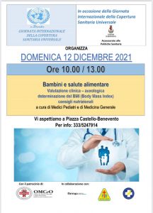 In Piazza ci saranno medici pediatri e di medicina generale che effettueranno valutazione clinica – auxologica, determinazione del Bmi (Body Mass Index) e forniranno consigli nutrizionali.