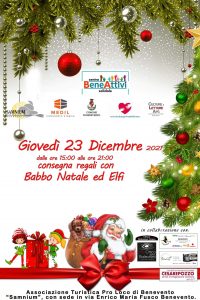 Babbo Natale e gli Elfi accoglieranno il giorno 23 Dicembre dalle 15:00 alle 21:00 presso il Centro Solidale “BeneAttivi” nel quartiere Santa Maria degli Angeli (Via Enrico Maria Fusco) i bambini e anche adulti presso il Centro Solidale “BeneAttivi” per consegnare loro un dono e fare qualche foto, perché è Natale ogni volta che sorridiamo a un fratello e gli tendiamo la mano. È Natale ogni volta che riconosciamo con umiltà i nostri limiti e la nostre debolezza. Il Natale viene a insegnarci come trovare la gioia di donare felicità e la gioia di essere gentile.